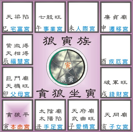 而狼寅族就是您的星族名稱,也就是說,您隸屬於貪狼系/狼寅族。