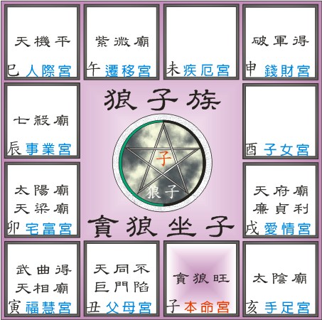 從出生的密碼得知,您命宮裡有一顆主星,稱作貪狼。