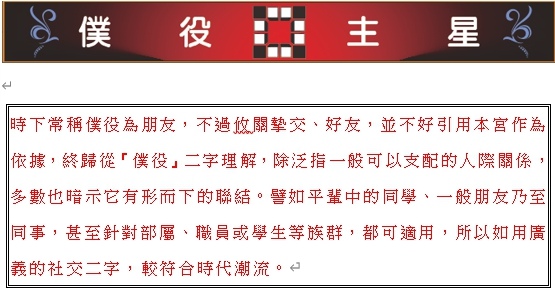 以上解釋,僅以月巳坐僕的基礎分享,莫可奈何的是,您的月巳先天隱晦,能量唯有10%,假設遭逢不當助星襲擊,勢必墜入任煞宰割的狀態。請點擊下列圖示,觀看僕役宮裡的主要助星將如何因應: